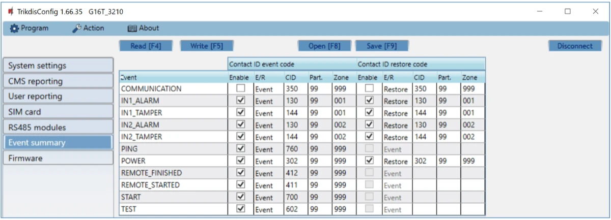 Events can be reported to CMS with SMS messages. SMS will be sent even if data connection stops working in the mobile operator network.
