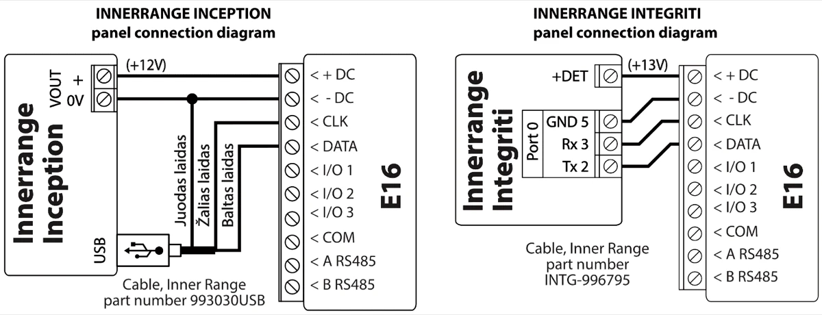 “Ethernet” communicator E16 directly connects to supported DSC, Paradox, UTC Interlogix (CADDX), Innerrange, Texecom, Honeywell, Crow and Pyronix alarm panels.