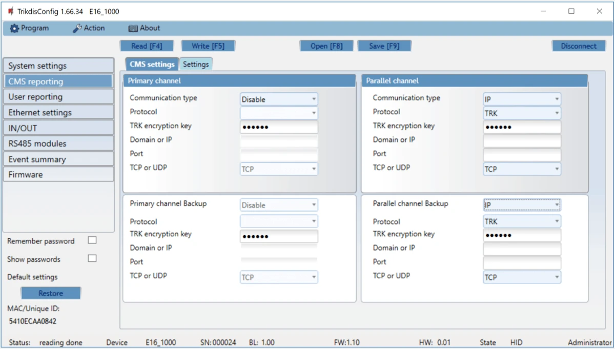 | Transmission protocols | TRK, DC-09_2007, DC-09_2012, TL150 |