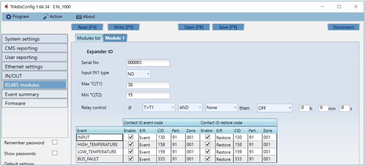 | Dual purpose terminals [IN/OUT] | 3, can be set as either NC; NO; NC/EOL; NO/EOL; NC/DEOL; NO/DEOL (2,2 kΩ) type inputs or open collector (OC) type outputs with current up to 0,15 A, 30 VDC max. Expandable with iO series expanders. |