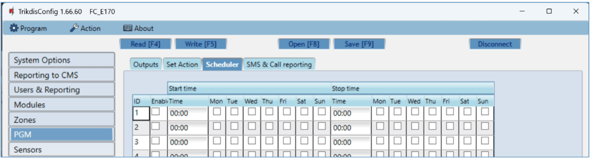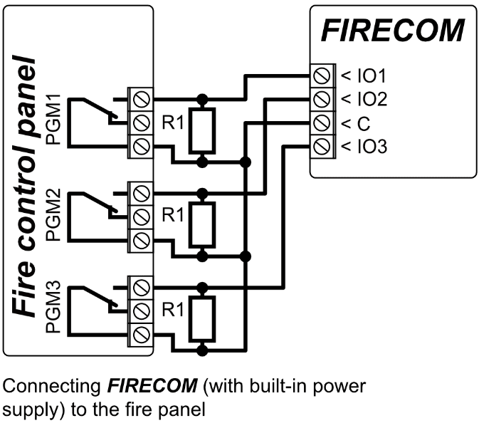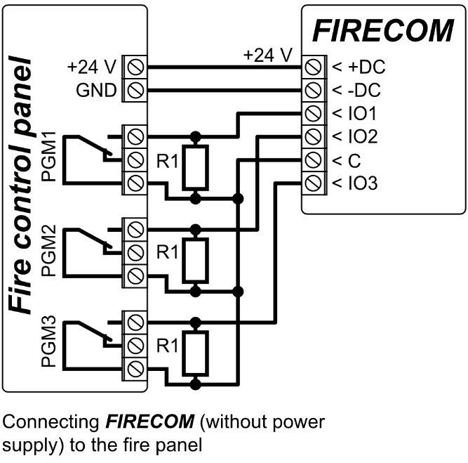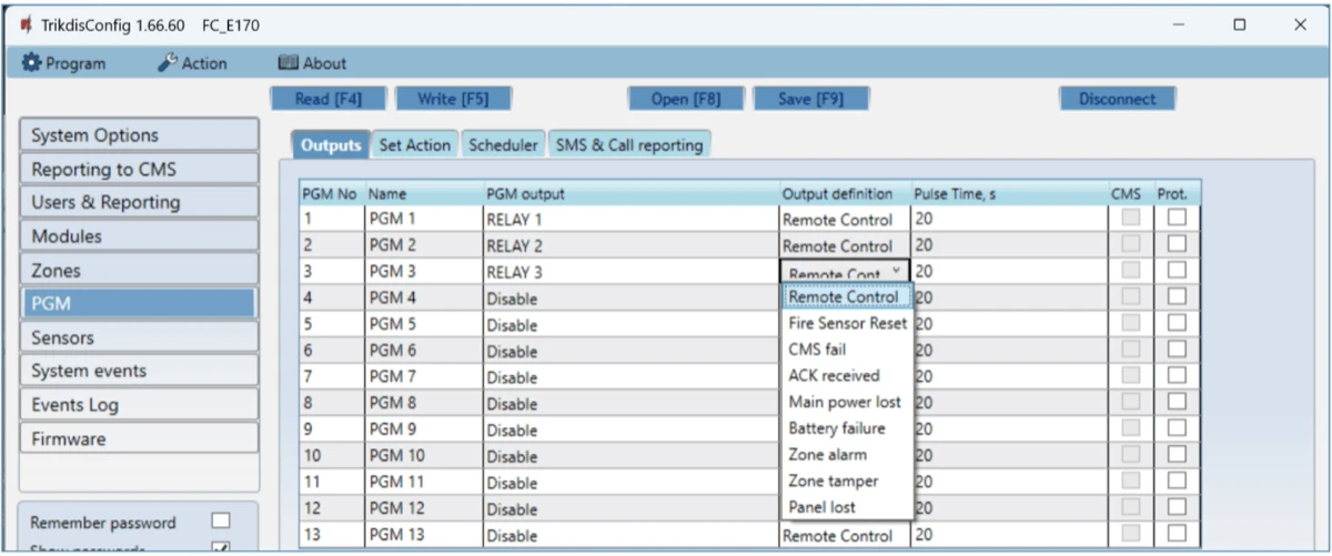 PGM output – assign outputs OUT of the FIRECOM or of an external device to a PGM.