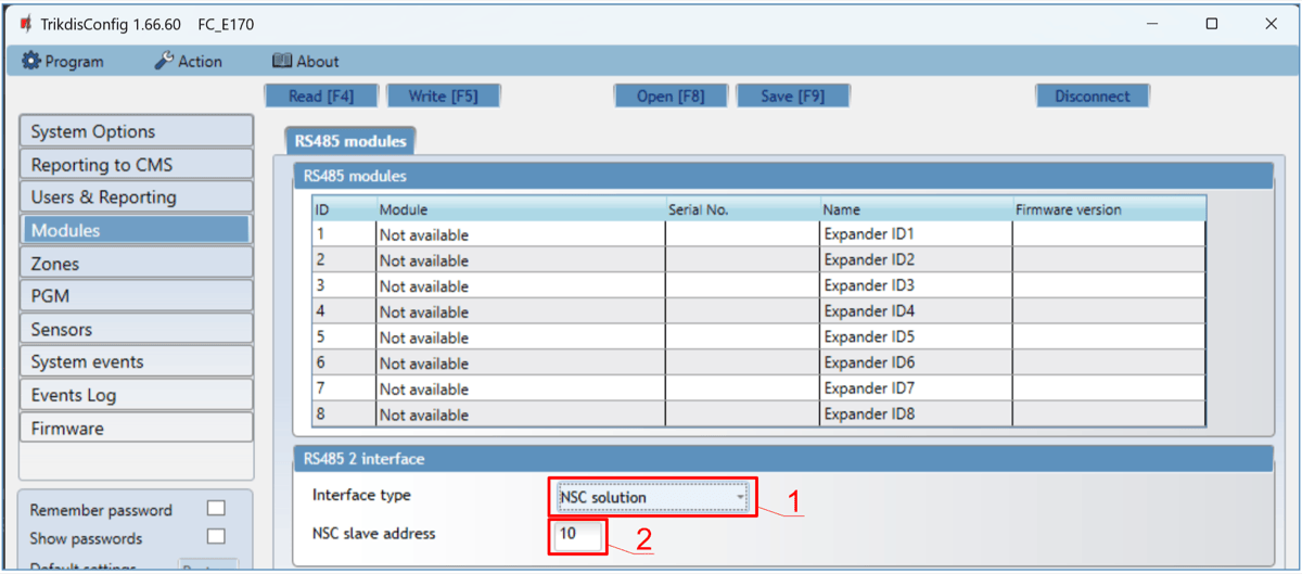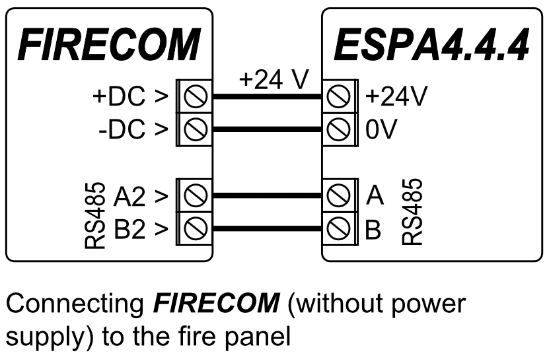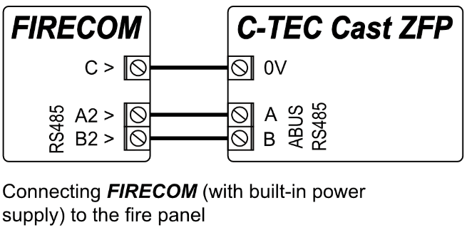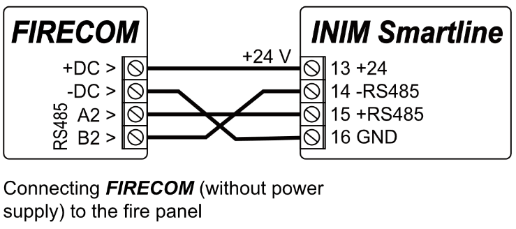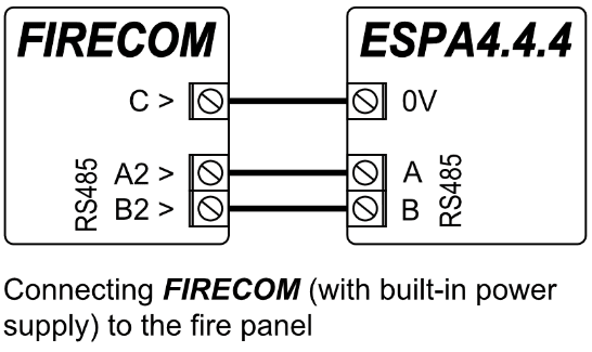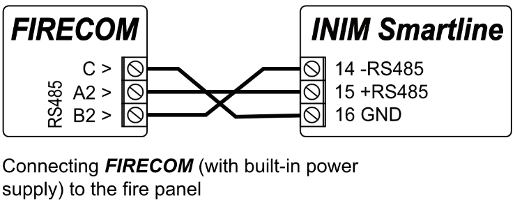 | A2 RS485 | RS485 bus for connecting fire alarm control panel |