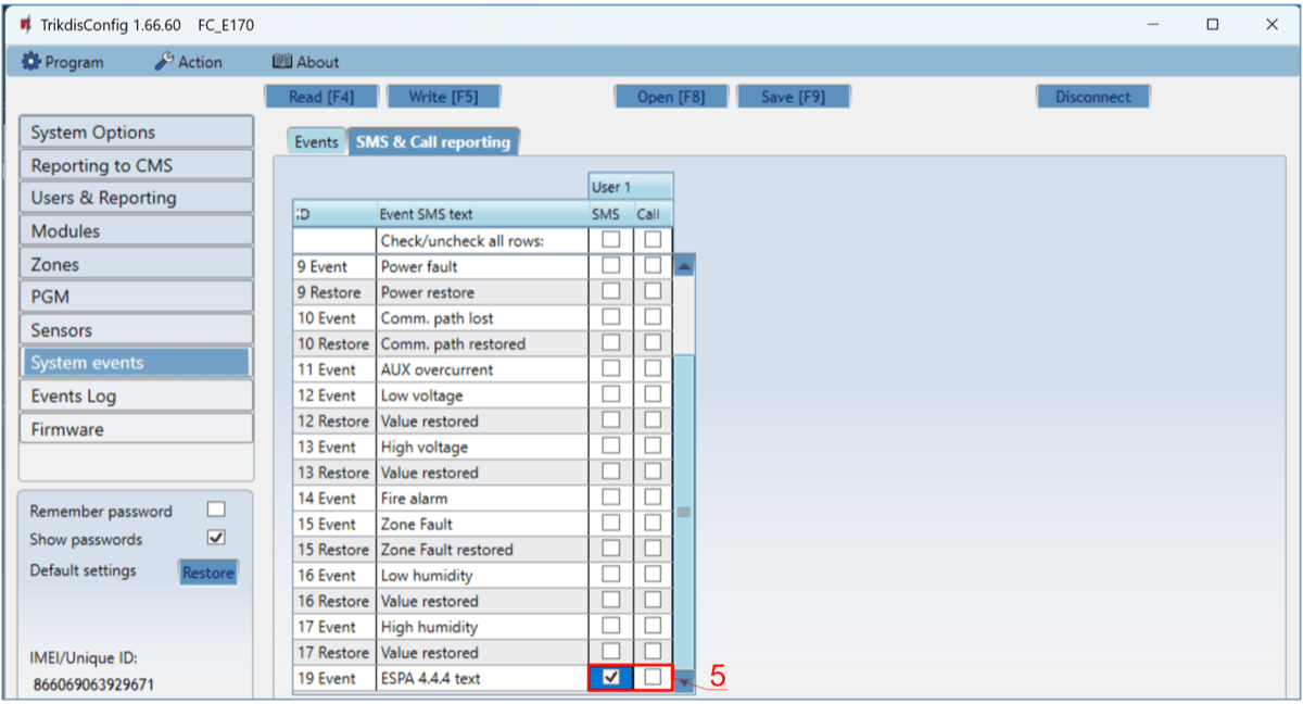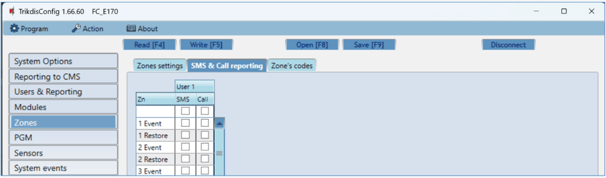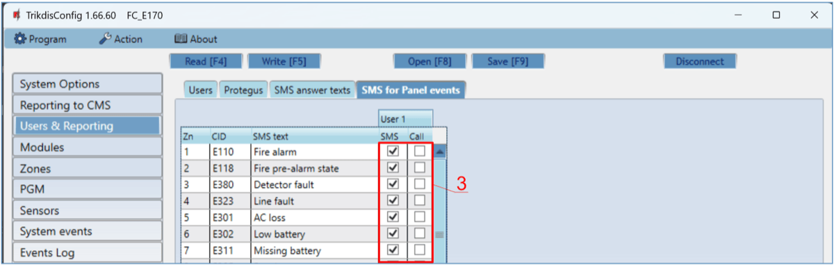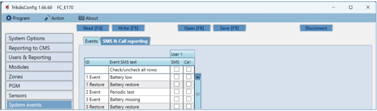 User SMS/Call – choose the ways users will be informed about each event – SMS message and/or phone call.