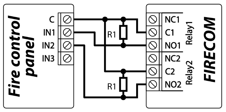 Input “FLOOP” is intended for connection of two-wire fire detectors.