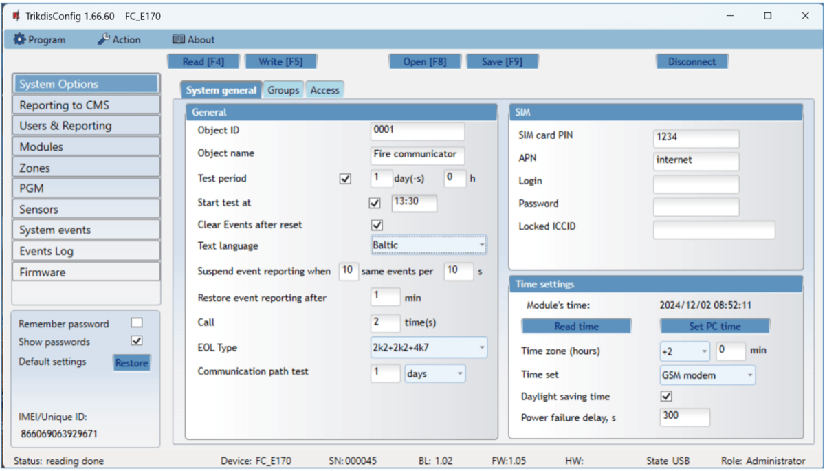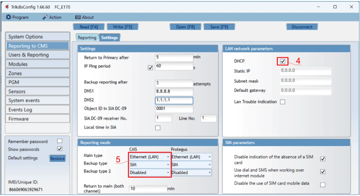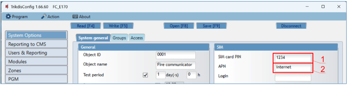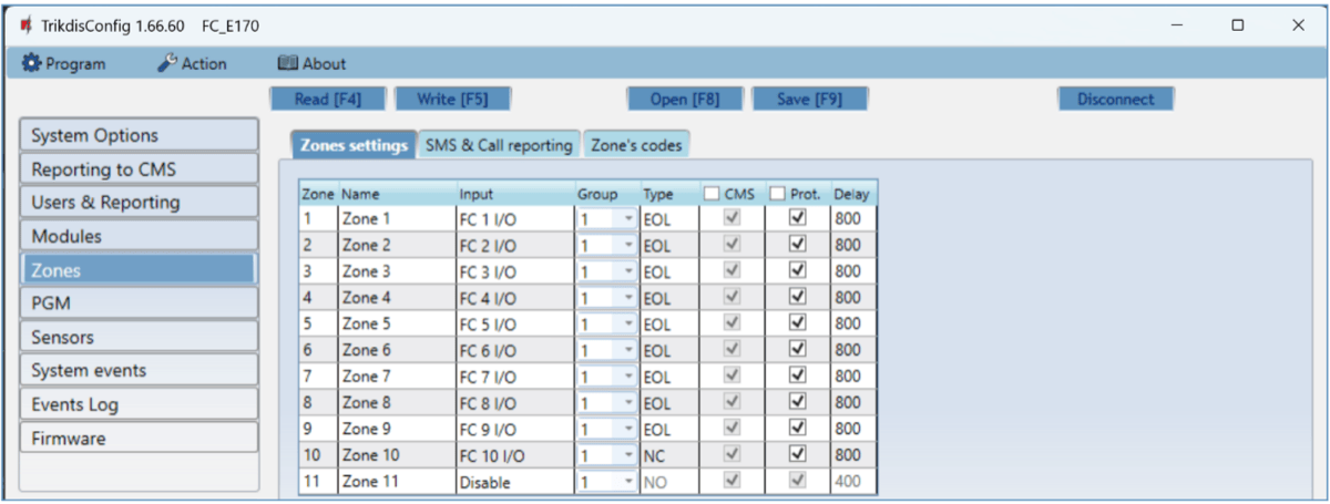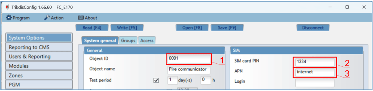 To test an input of the communicator, enable it. Check if the events were received by the Central Monitoring Station (CMS) and/or Protegus2 application.
