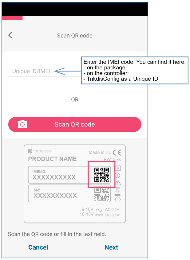 In the “Remote access” window, enter the communicator’s “Unique ID” number. You can find this number on the back of the device and on the device’s packaging.