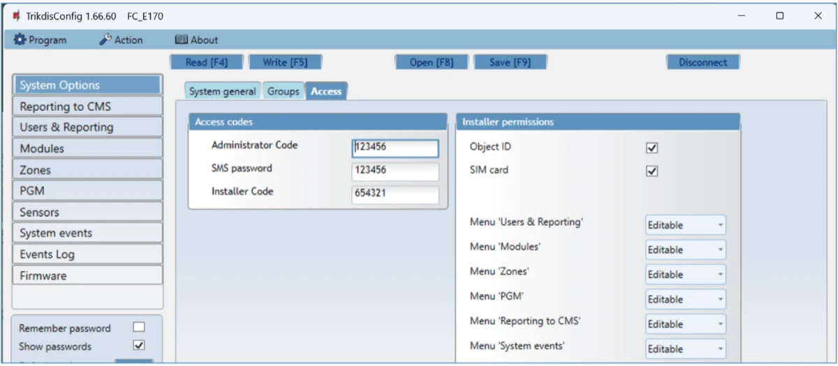Two access levels (types of accounts) for setting parameters: for the installer and for the administrator.