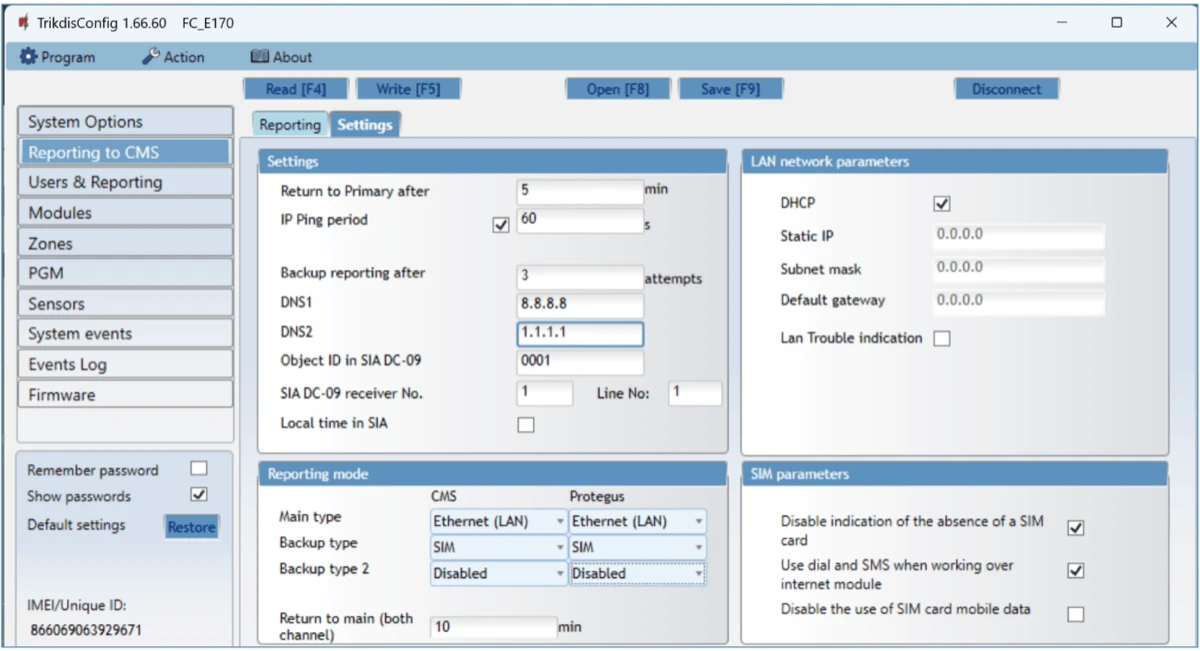 Any CMS can receive reports, as long as they have TRIKDIS software/IP receiver or any other manufacturer’s IP receiver supporting SIA DC-09 IP protocol.