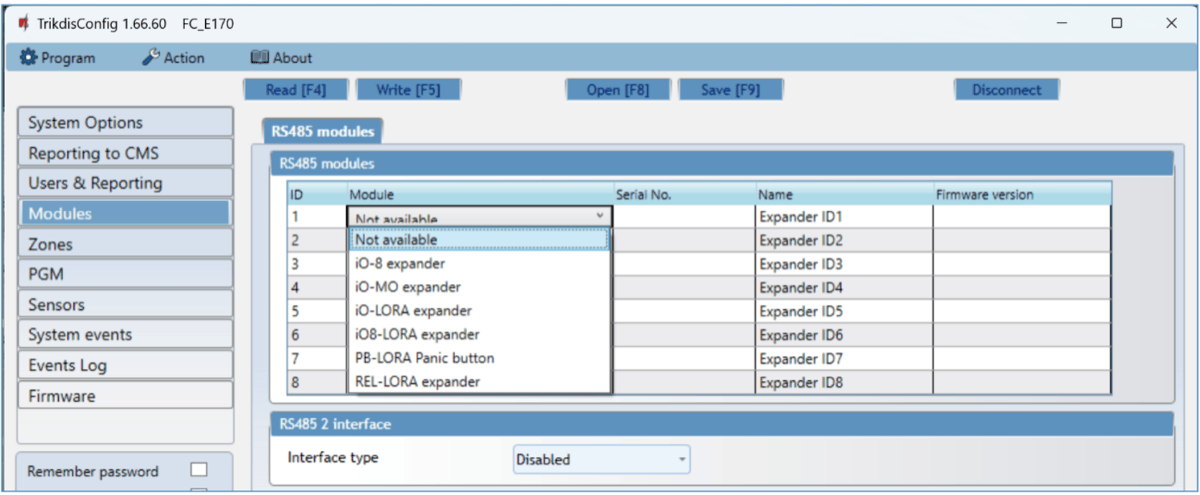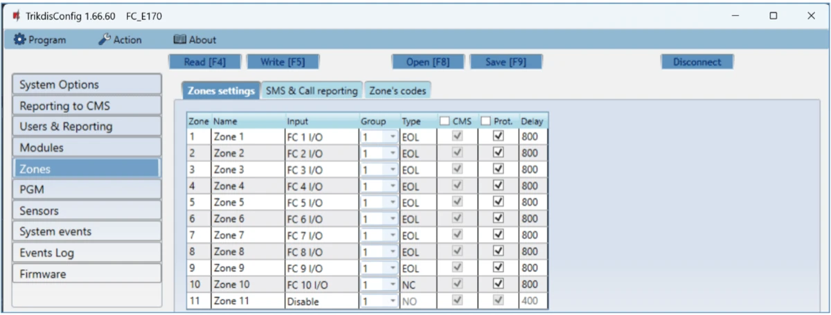 When you are finished setting the desired parameters, click Write [F5]. If you are done working with TrikdisConfig, click “Disconnect”.**