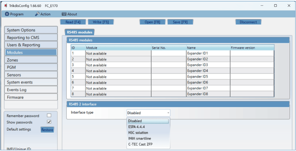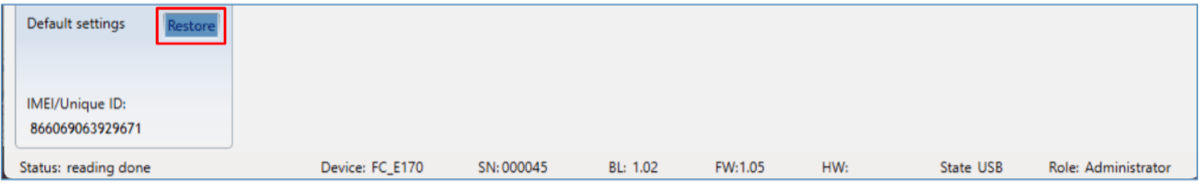 To restore the communicator’s default settings, click the TrikdisConfig button “Restore”.