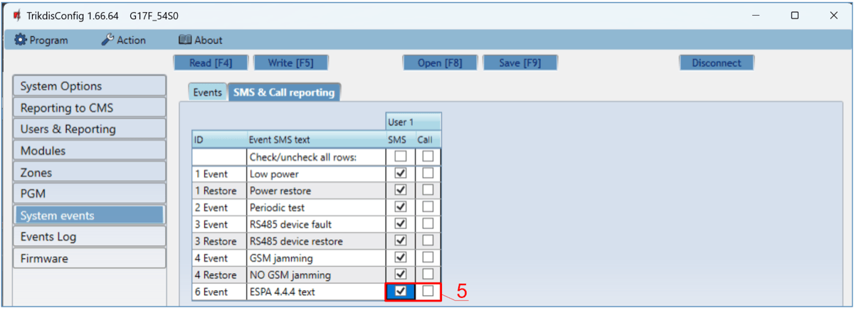 CMS – if the box is ticked, messages about chosen events will be sent to CMS.