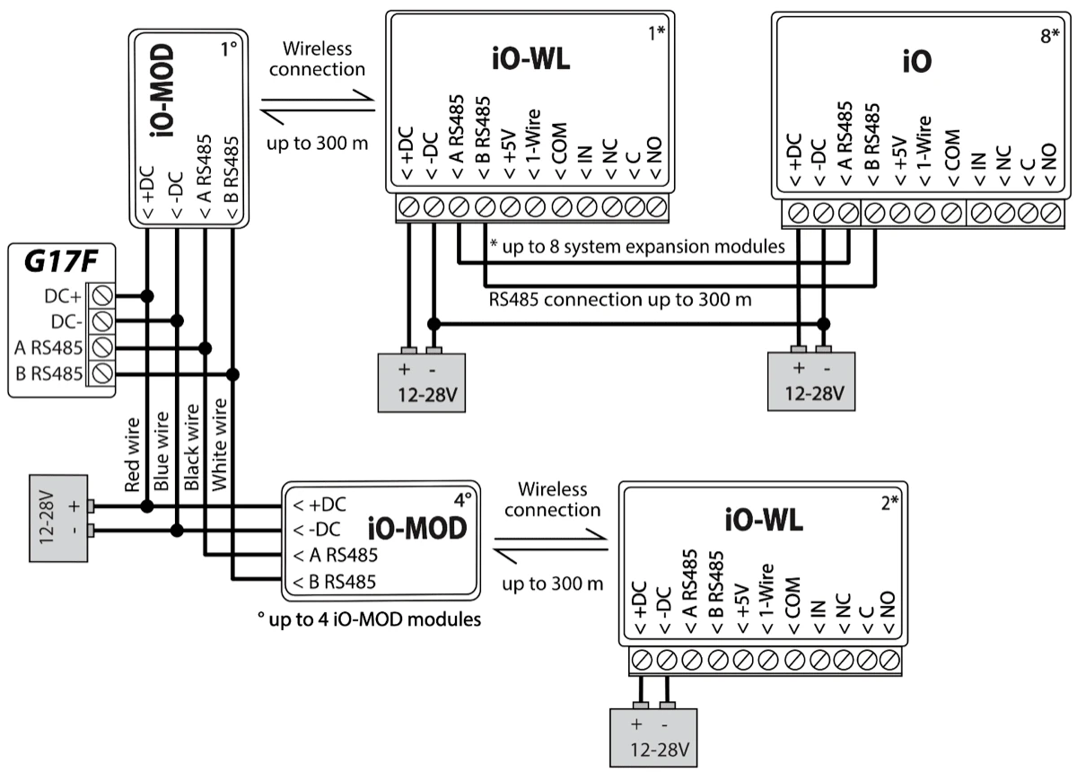 RS485 bus for connecting iO series expander modules.