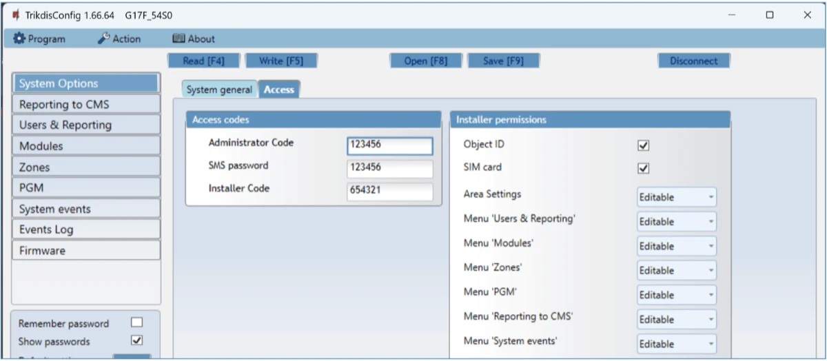 Two access levels (types of accounts) for setting parameters: for the installer and for the administrator.