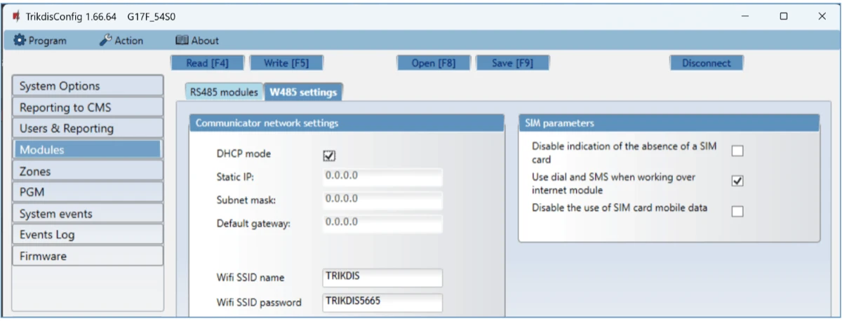 When you are finished setting the desired parameters, click Write [F5]. If you are done working with TrikdisConfig, click Disconnect.**