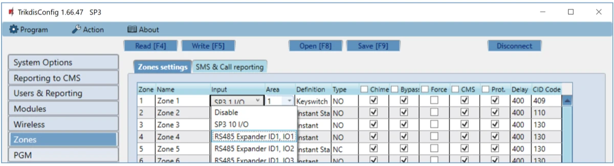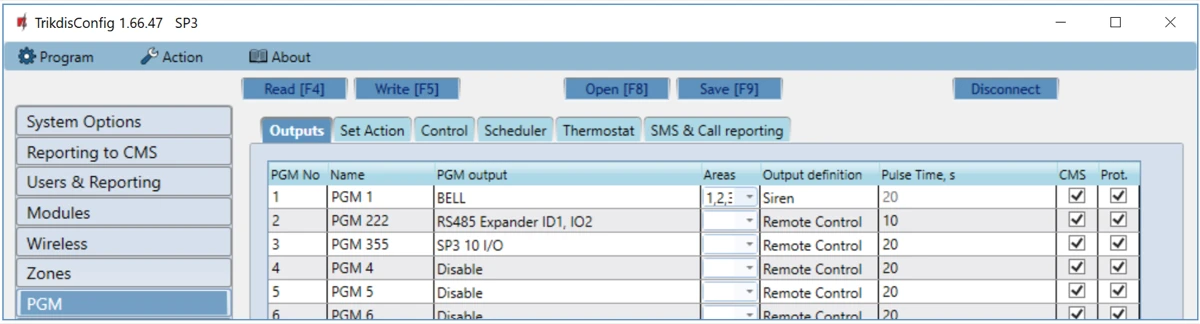 - In the "PGM" tab, configure the expander's PGM outputs.