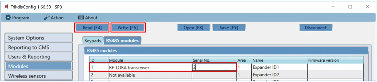 In the "Serial No." field, enter the serial number of the RF-LORA.