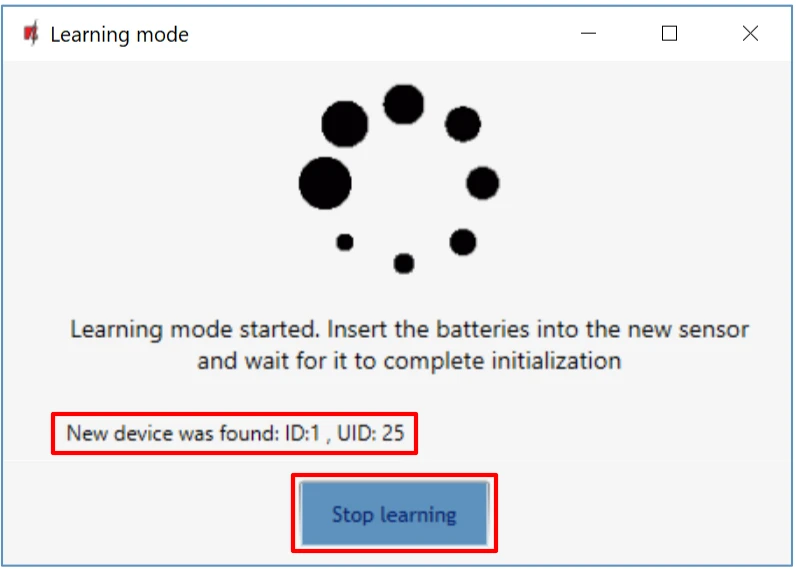 Click “Stop learning” to complete the registration of wireless panic buttons.