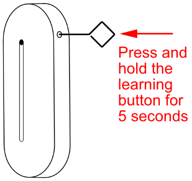 - Press and hold the learning button for 5 seconds. Release the button when the indicator flashes green four times.
