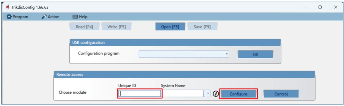 Using TrikdisConfig, remotely connect to the “FLEXi” SP3 control panel.