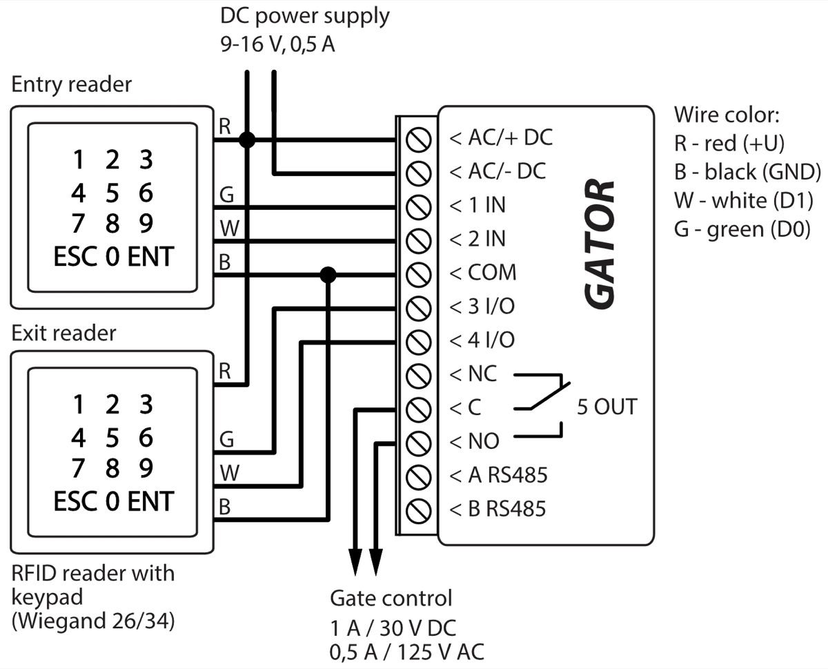 Code - if an RFID reader with keypad (Wiegand 26/34) is connected to the controller, then the user can enter the control code.