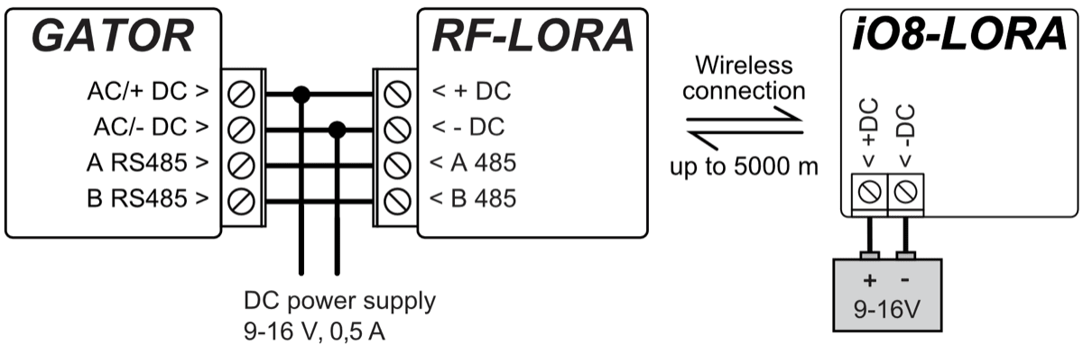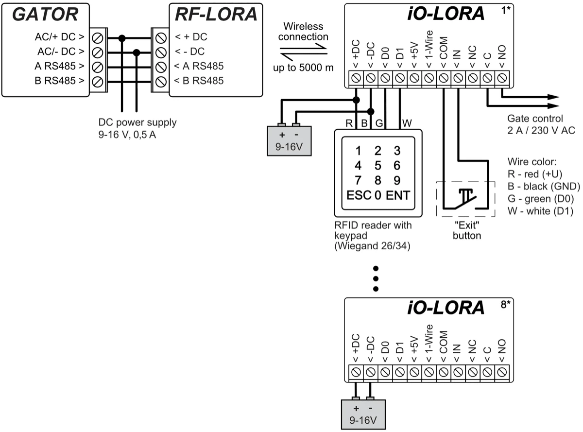 With the iO-LORA expander you can additionally add one input and one PGM output (relay). In total, you can add 8 iO- LORA expanders (add up to 8 additional inputs and 8 PGM outputs).