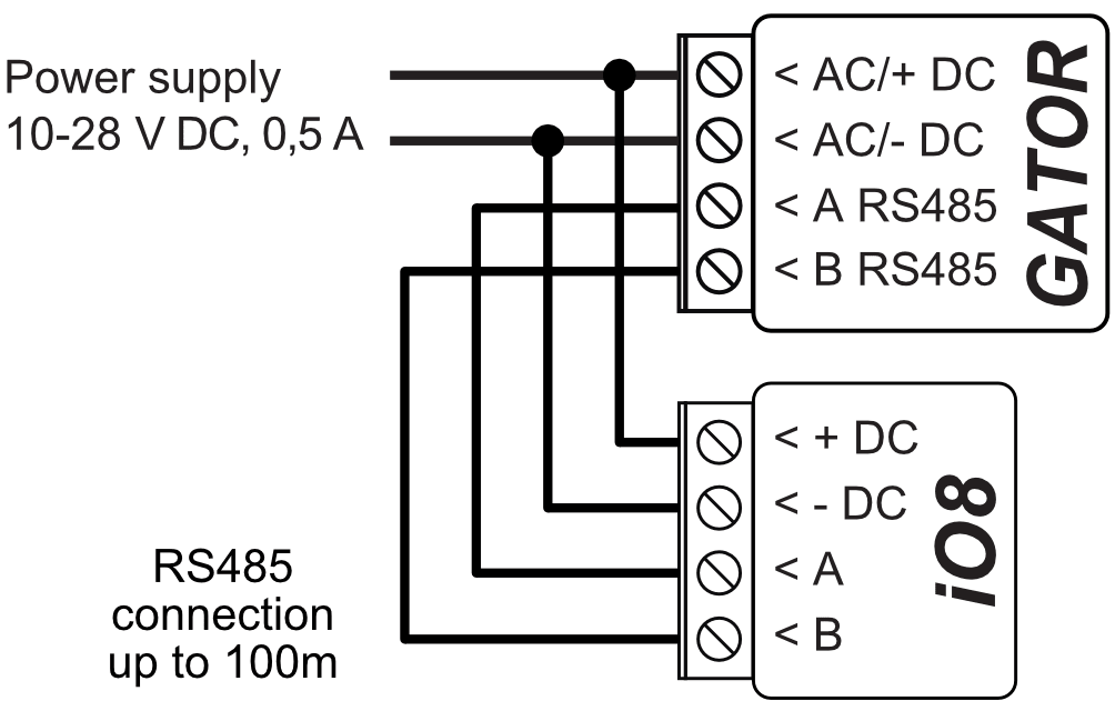 | B RS485 | Contact B of RS485 bus |