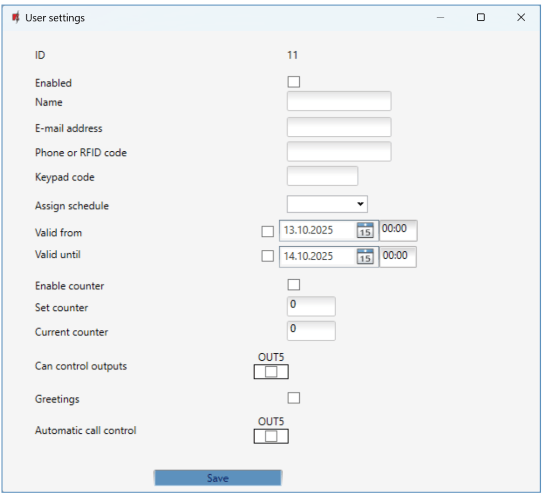 User settings (numbers from 11 to 1010) - ID – user number.