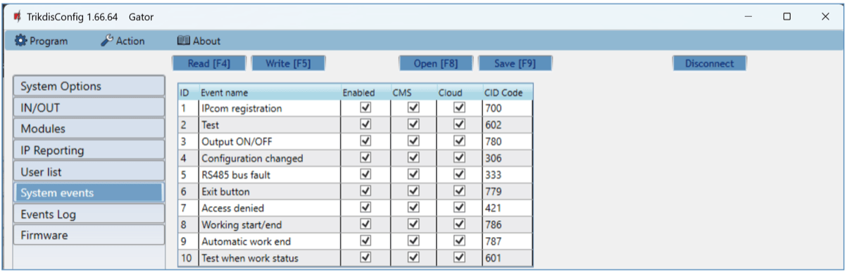 Setting up sending controller events to the CMS (central monitoring station) and to the Protegus2 application.