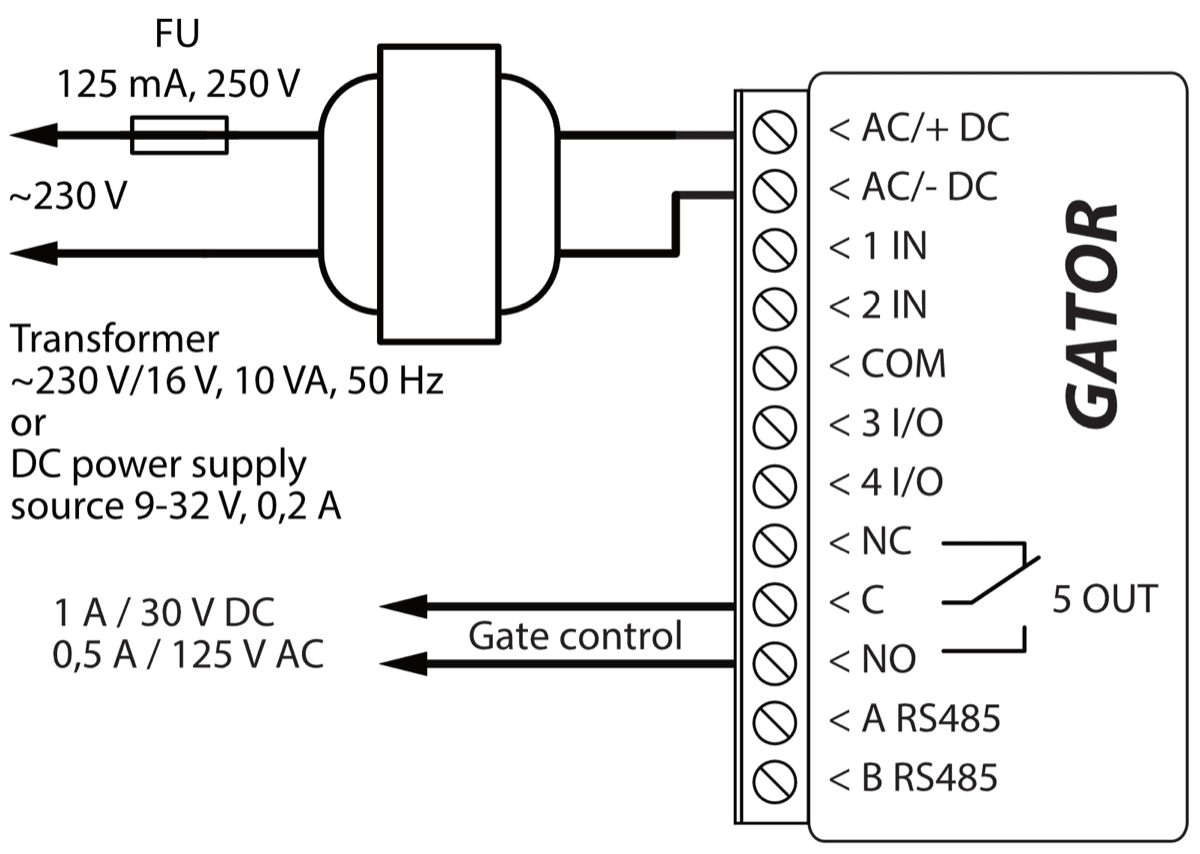 | AC/+DC | Power terminal (9-32 V DC positive; 12-24 V AC) |