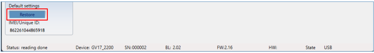 To restore the default settings of the controller you need to click the “Restore” button in the TrikdisConfig program window.