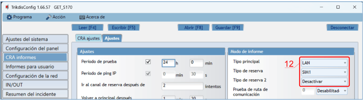 Canal de respaldo, que se utilizará si se pierde la conexión con el canal primario.