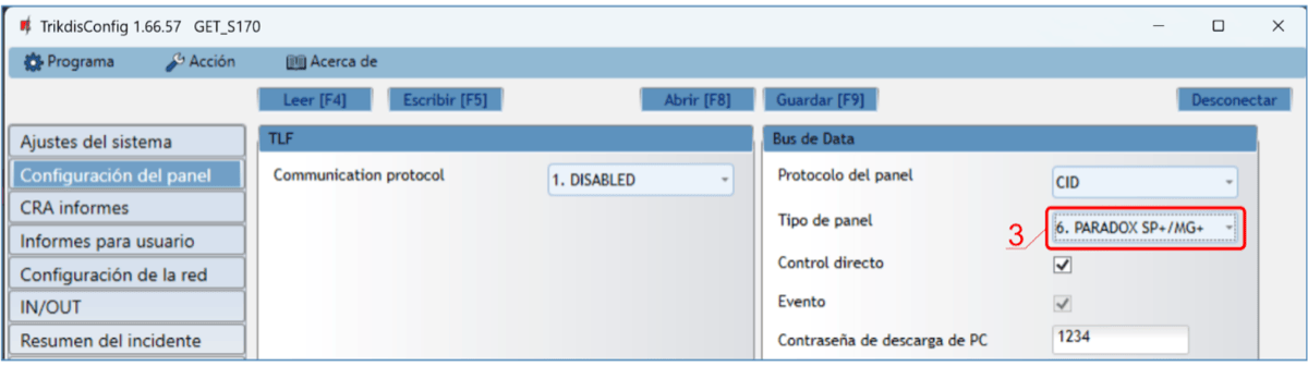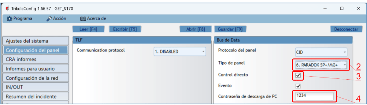 Subrayado - paneles de control controlados directamente por GET. Paneles de control Paradox, que se controlan directamente, debe contener la versión de firmware V.4 o superior.