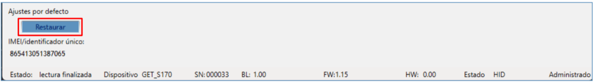 | Restablecimiento del sistema restaurado en la zona: | R305 | "RR" |