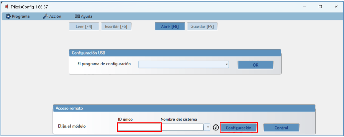 | Modificación de los ajustes | Con el software de configuración TrikdisConfig de forma remota o local a través del puerto USB-С. |