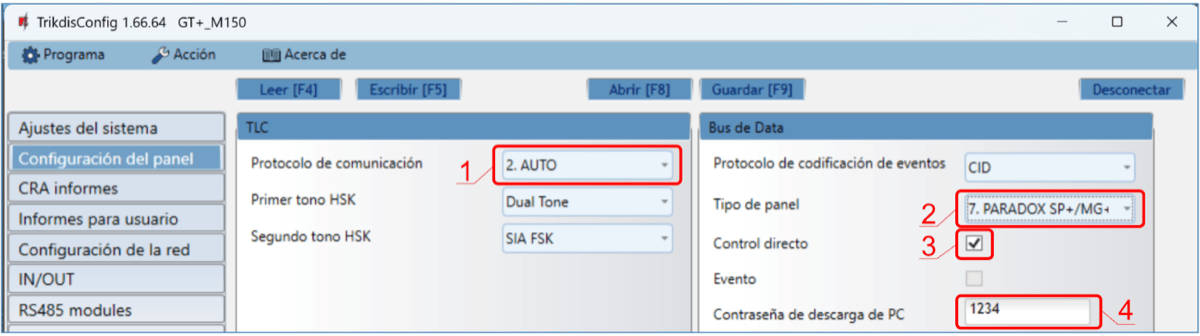 Subrayado - paneles de control controlados directamente por GT+. Paneles de control Paradox, que se controlan directamente, debe contener la versión de firmware V.4 o superior.