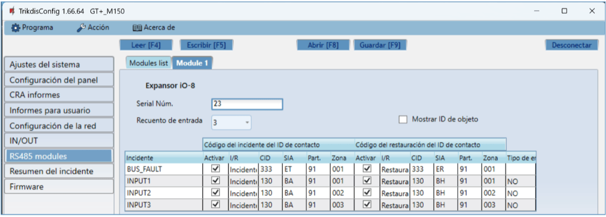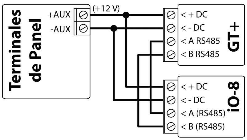 | A 485 | Contacto RS485 para conectar expansores iO-8 |