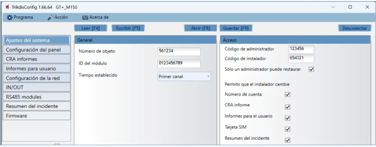 Dos niveles de acceso para configurar el dispositivo para el administrador de CRA y para el instalador.