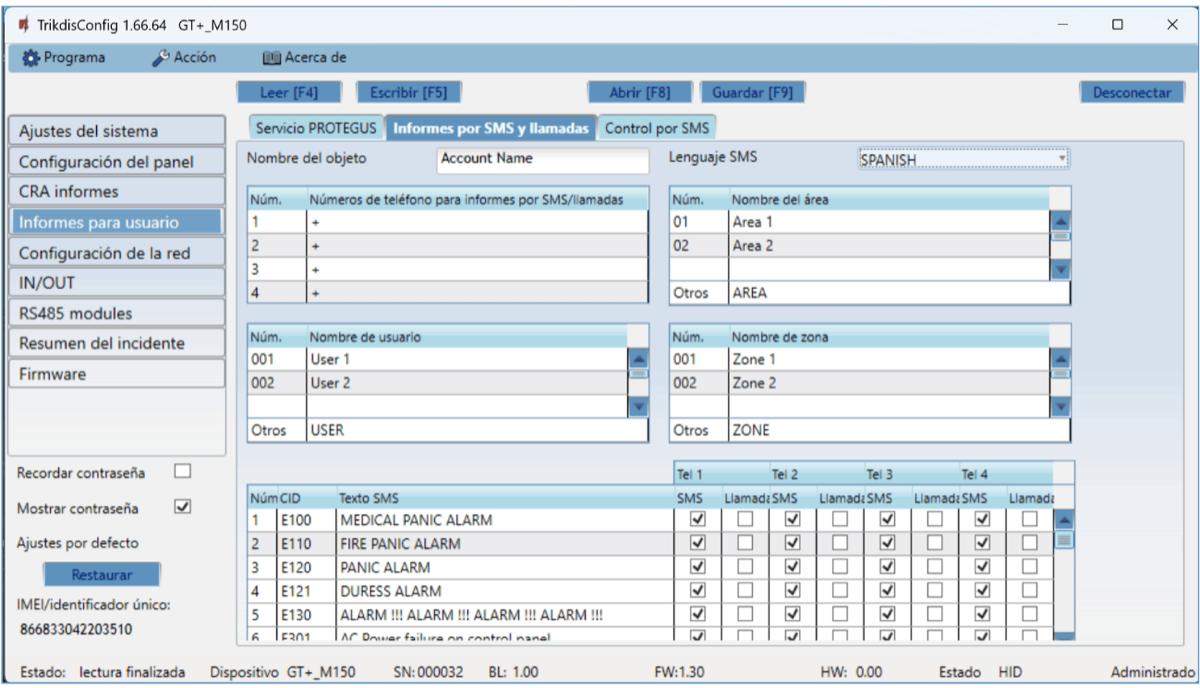 - Los usuarios pueden ser informados sobre eventos no solo con aplicación Protegus2, sino también con mensajes SMS y una llamada.