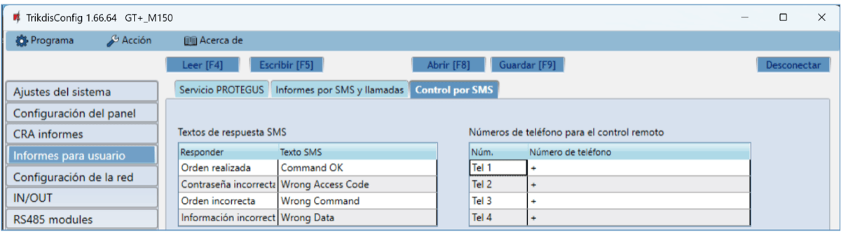 Salidas controladas por Protegus2 y SMS.