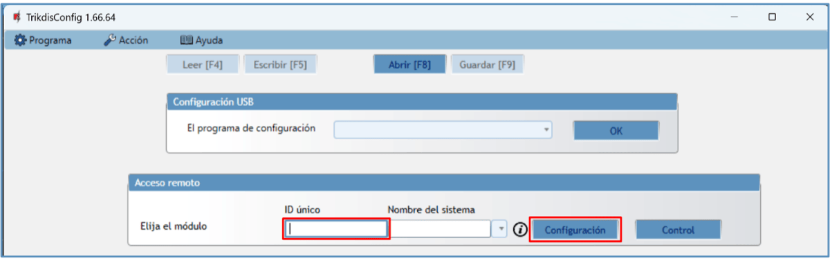 | Modificación de los ajustes | Con el software de configuración TrikdisConfig de forma remota o local a través del puerto USB-С |