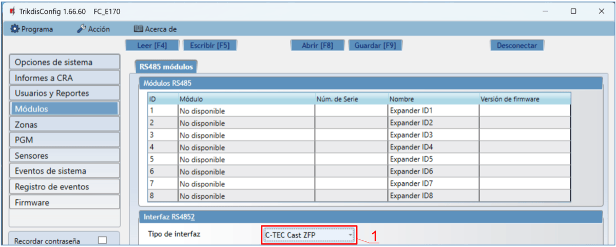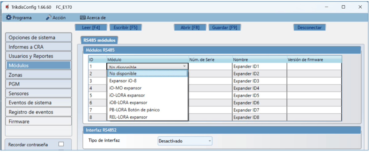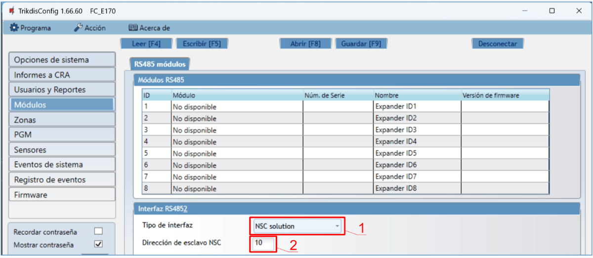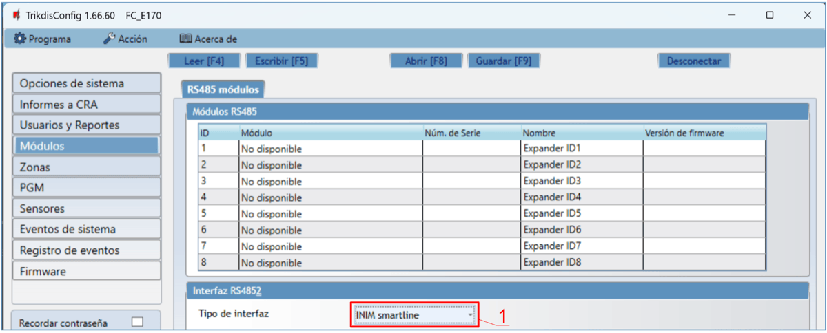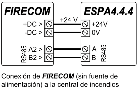 Bus RS485 2 se utiliza para conectar paneles de incendios.