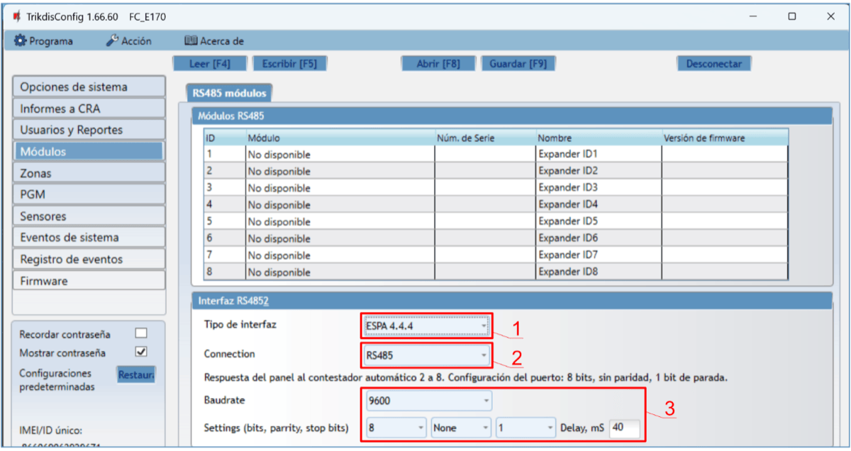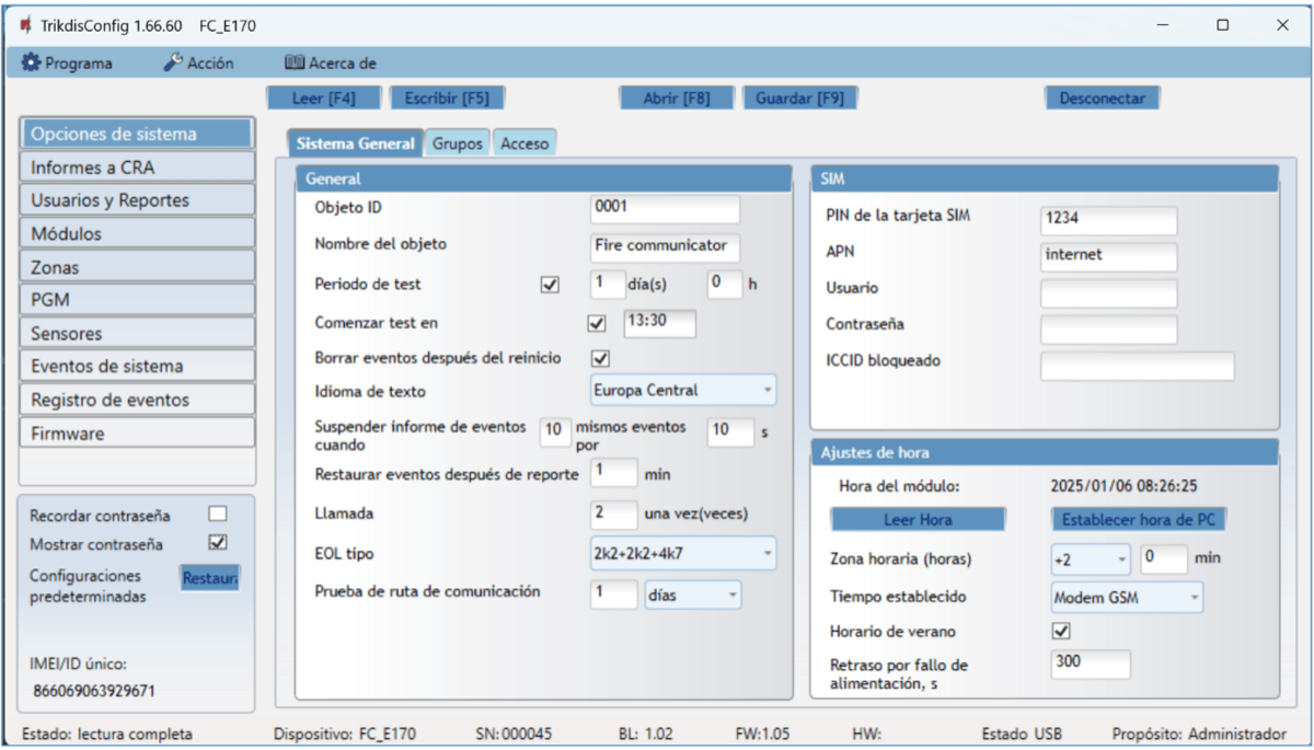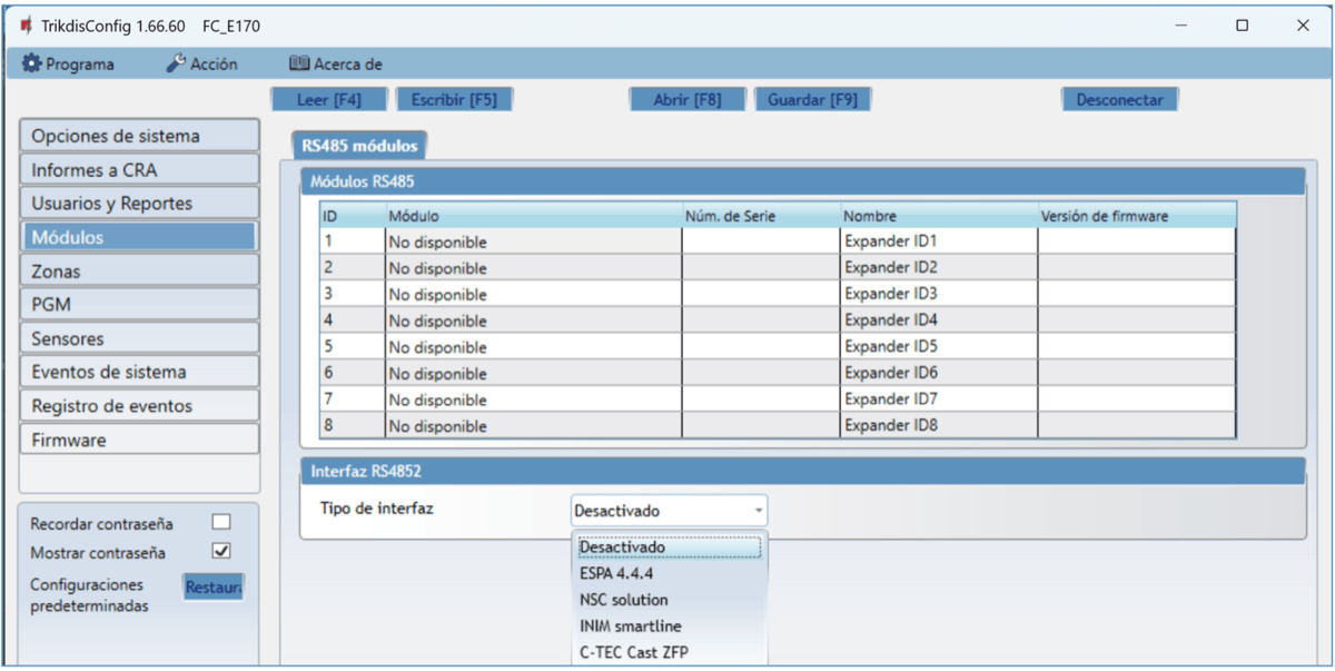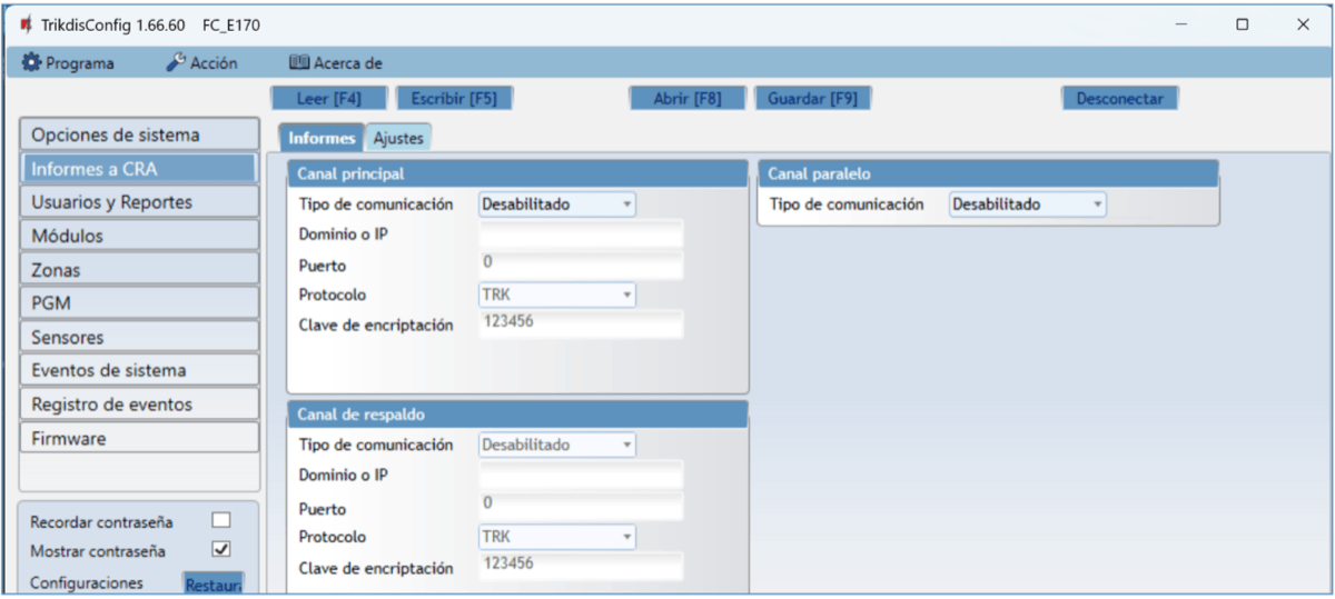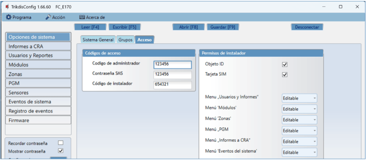 En la nueva ventana de clic en Leer [F4]. A petición, ingrese el código del administrador o instalador. Para guardar la contraseña, seleccione “Recordar contraseña” en la ventana principal.
