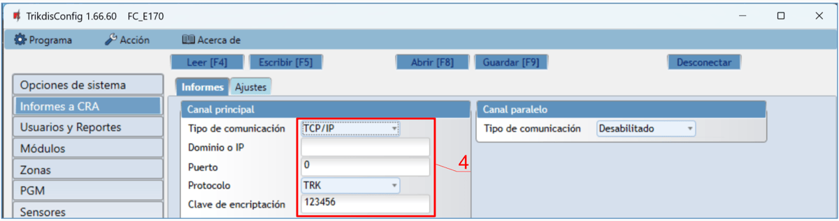 | Protocolos para conexión a CRA | TCP/IP o UDP/IP |
