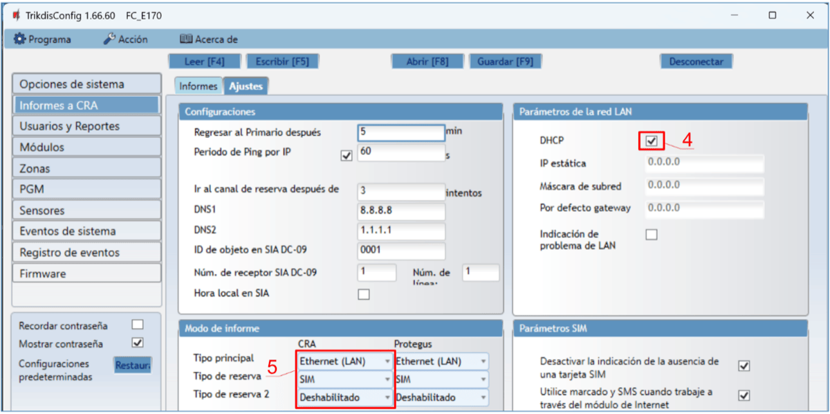 CRA – si esta casilla está marcada, los informes de activación/desactivación de la salida PGM se enviarán a la estación central de monitoreo (CRA).