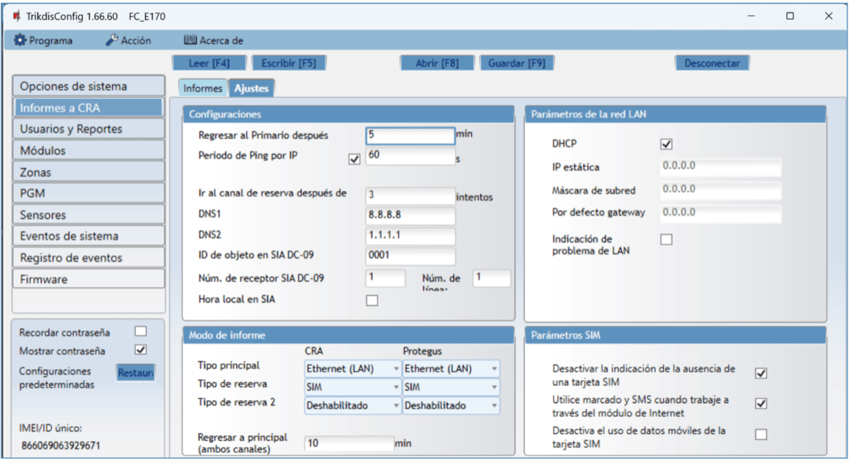 | Protocolos de Transmisión | TRK, SIA DC-09_2007, SIA DC-09_2012, SIA DC-09_IPcom, TL150 |