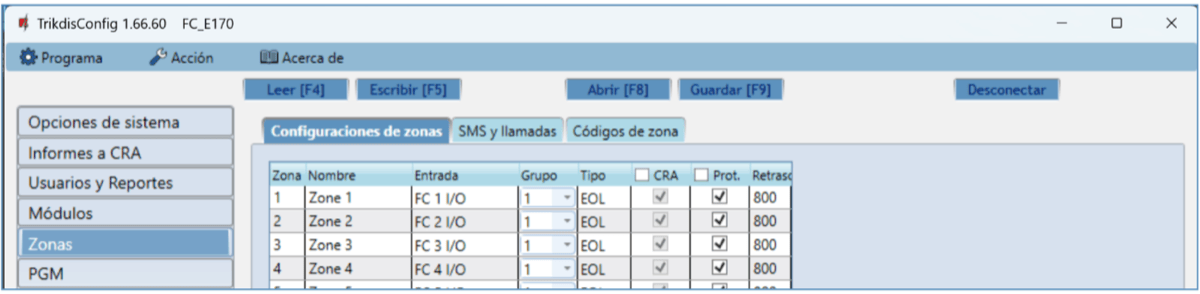 | Número de zonas | 10 (20 zonas si se usa ATZ), (se puede ampliar a 32 zonas con expansores) |