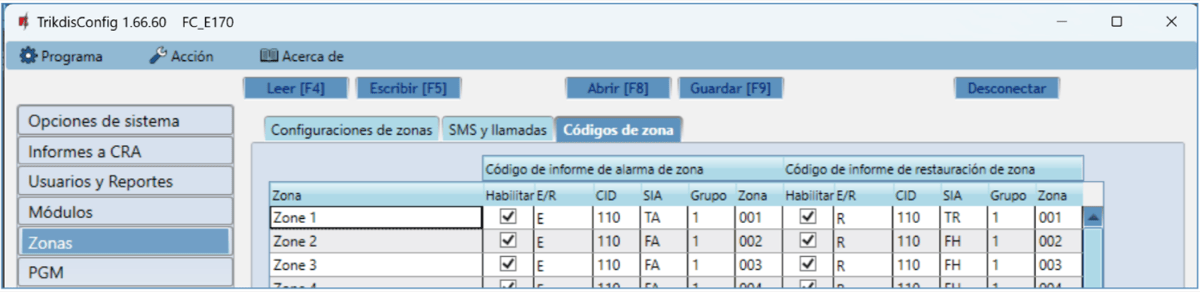 Zona - ingrese el número de zona que se enviará después de que ocurra el evento.