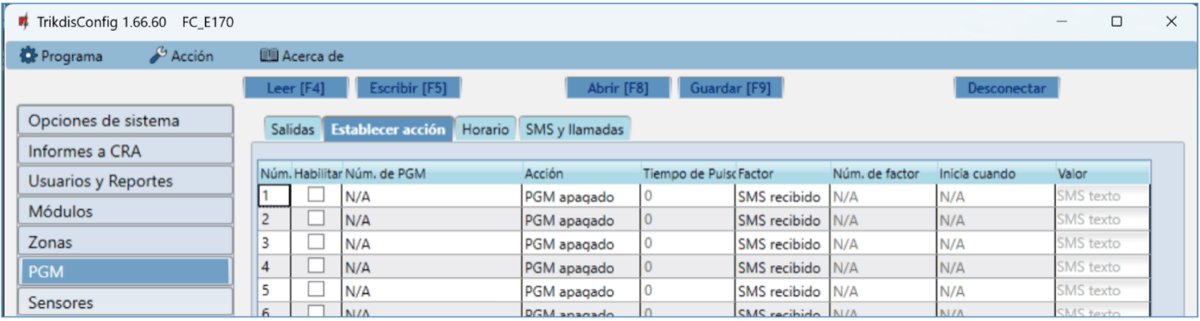 PGM Núm. – especifica el número de salida de PGM en la lista.