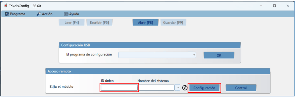 En su PC abra el software de configuración de TrikdisConfig.