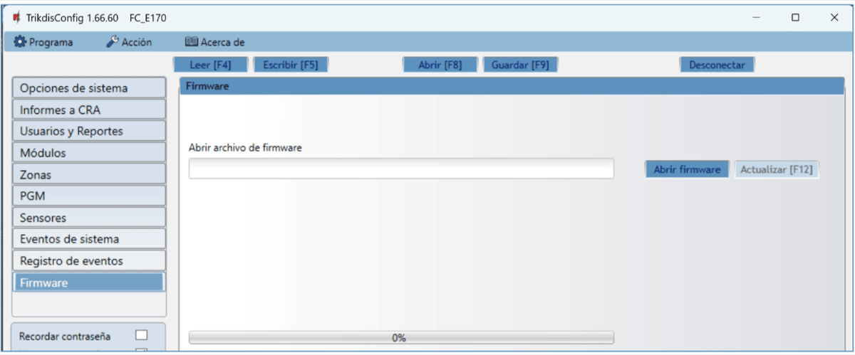 Presione “Abrir firmware” y seleccione el archivo de firmware requerido.